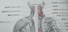例えば肩の表面には僧帽筋があり、その下に肩甲挙筋などの筋肉があります。